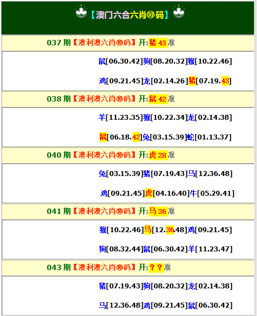 | 043期④肖 | 马鼠羊牛 | 开?00中 |